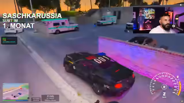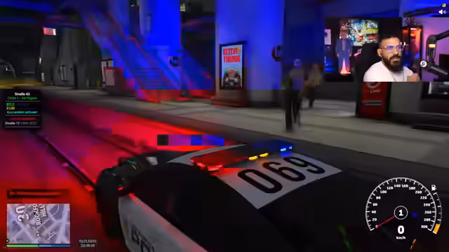 00:11:06Der Streamer beginnt, sein PD-Auto (Polizeiauto) zu tunen, indem er verschiedene Sticker, Spoiler und andere Teile auswählt. Er ist beeindruckt von den Möglichkeiten des Servers und erwähnt, dass er schon viel darüber gelernt hat. Nachdem er sein Auto fertig hat, geht er auf Streife und begegnet verschiedenen Charakteren, darunter Dimitri, den er mit einem Taxi fährt, weil dieser nicht angemessen gekleidet ist.