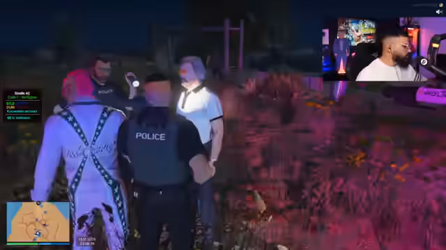 04:37:01Nach der Festnahme des Fahrers, Deshawn Shelton, beginnt die bürokratische Abwicklung. Der Streamer und seine Kollegen überprüfen seine Akte, die eine lange Liste von Vergehen aufweist, darunter versuchter ATM-Raub und illegaler Waffenbesitz. Es wird festgestellt, dass Shelton ein Wiederholungstäter ist und der Brook Avenue Gangsters-Fraktion angehört, was die Anklagepunkte um Bandenkriminalität erweitert. Es kommt zu einer humorvollen Debatte über die maximale Haftstrafe, die ein Officer verhängen darf, wobei der Streamer zunächst 30 Haftstrafen verhängt, diese dann aber auf 20 reduziert, da Shelton 'anständig' war. Nach weiteren Verhandlungen und dem Versprechen, ihn in 10 Minuten freizulassen, wenn er sich benimmt, wird ein Timer gestellt. Der Streamer und seine Kollegen sind sichtlich erschöpft von dem ereignisreichen Tag.