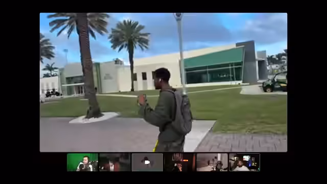 01:24:28Ein Student namens Michael, genannt 'M2', kommt ins Gespräch und stellt sich vor. Er ist 22, spielt Fußball an der Florida Atlantic University und lebt seit zwei Monaten in Amerika. M2 beschreibt die positive Atmosphäre am Campus, die durch das tägliche Aufwachen mit Blick auf Palmen und den Umgang mit anderen motivierten und positiven Menschen geprägt ist. Er betont, wie sehr man dort durch sportliche Aktivitäten eine hohe soziale Aura und Respekt genießt.