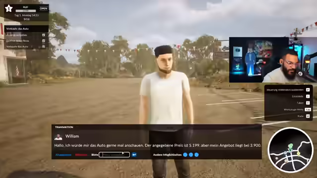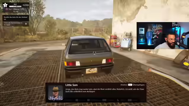 01:15:09Der Streamer dreht das Schild an der Tür, um das Unternehmen zu öffnen, und äußert den Wunsch, eine Werkstatt wie im Spiel zu besitzen und dort zu leben. Ein Kunde betritt das Autohaus und es beginnt die Verhandlung über den Preis des Autos. Der Streamer hat drei Versuche, um den Preis zu verhandeln und versucht, die Erwartungen des Kunden zu erfüllen. Das erste Angebot des Kunden ist deutlich unter dem angegebenen Preis, was zu einer humorvollen Reaktion des Streamers führt. Es wird ein Gegenvorschlag gemacht, der jedoch vom Kunden abgelehnt wird. Nach mehreren Verhandlungsrunden und einem letzten Angebot verkauft der Streamer das Auto schließlich. Ein neuer Kunde betritt das Autohaus und es beginnt eine weitere Verhandlung, bei der der Streamer versucht, seinen 'Bruder' nicht zu enttäuschen. Am Ende verkauft er das Auto zu einem niedrigeren Preis, um den Kunden zufriedenzustellen. Der Streamer schließt das Büro und beendet den Tag, um am nächsten Morgen neue Anzeigen zu erstellen.