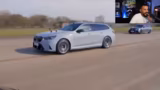 00:26:59Der Fokus verlagert sich auf mehrere virtuelle Drag Races und Rennstrecken-Tests. Dabei werden leistungsstarke Fahrzeuge wie Audi RS7, BMW M8 und Mercedes AMG GT 63 S gegeneinander antreten. Der Streamer äußert seine Skepsis gegenüber den Ergebnissen, die oft zugunsten von Audis ausfallen, und vermutet eine Beeinflussung der Videos durch Sponsoring.