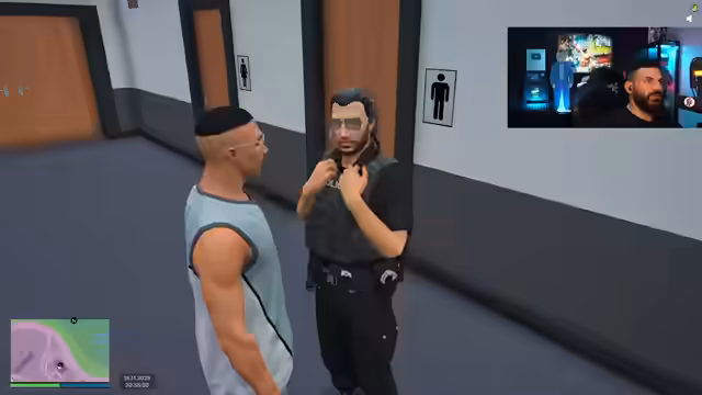 00:17:51Die Szene wechselt ins LSPD, wo der Streamer, als Charakter Faroud Ben, ein Bewerbungsgespräch mit Vorgesetzten absolviert. Die Fragen konzentrieren sich auf sein Verhalten bei Konflikten und die moralischen Grundsätze. Ben rechtfertigt seine vorgeblichen Aktionen, darunter das Schlagen von Zivilisten, als Selbstverteidigung und betont seine Loyalität zum LSPD. Die Vorgesetzten bleiben jedoch skeptisch und degradieren ihn vorerst.