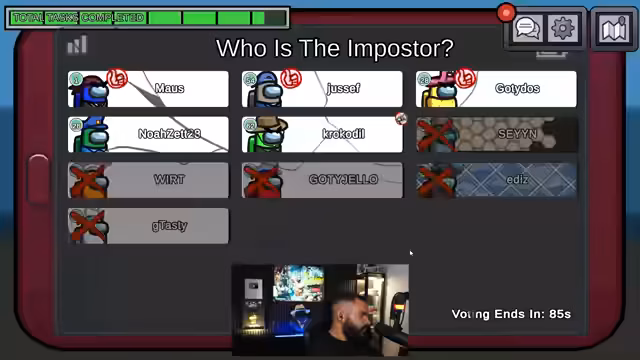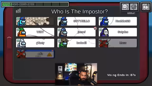 00:21:01Das Spiel 'Among Us' beginnt mit einem Squad aus mehreren Spielern. Der Streamer, der unter Schmerzmitteln steht, ist bemüht, ruhig und strategisch zu agieren. Die erste Runde ist geprägt von Misstrauen und gegenseitigen Verdächtigungen. Der Streamer analysiert die Vorfürfe sorgfältig und argumentiert, dass einer der Mitspieler ein 'Shapeshifter' sein könnte. Nach einer intensiven Phase der Spekulation wird Noah als der Impostor identifiziert und aus dem Spiel gewählt.