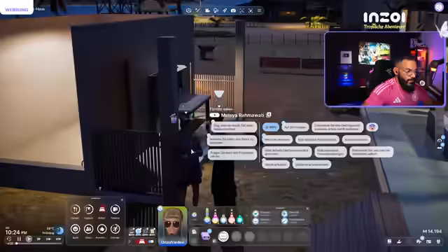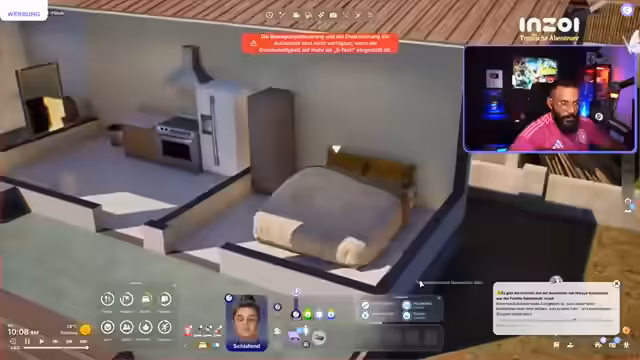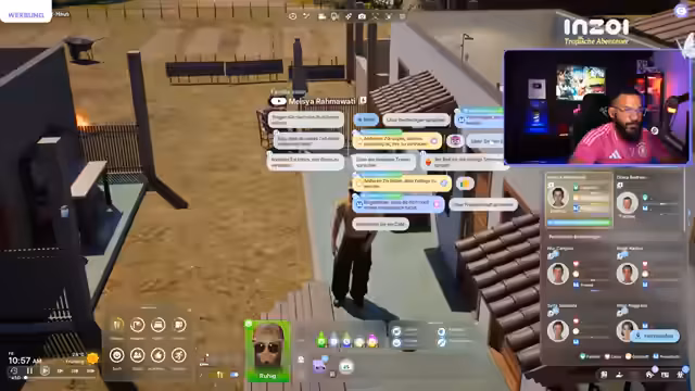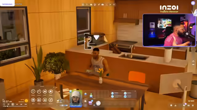 04:05:46Es wird überlegt, dass die Poolparty möglicherweise am Wochenende stattfindet, da bei Edis und Denzen Donnerstag ist und somit bald Wochenende. Es wird sogar die Idee diskutiert, selbst eine Poolparty zu organisieren. Im Spiel erlebt der Charakter ein Beziehungsdrama, inklusive Scheidungswunsch der Ehefrau, was live im Stream mitverfolgt wird. Der Charakter versucht, eine neue Beziehung einzugehen, wird aber von seiner Frau gestalkt. Die Zuschauer kommentieren das Geschehen und vergleichen es mit einer realen Ehekrise, bei der Vernachlässigung und fehlende Komplimente zur Entfremdung geführt haben. Es wird spekuliert, ob das Verhalten der Charaktere von einer KI gesteuert wird.