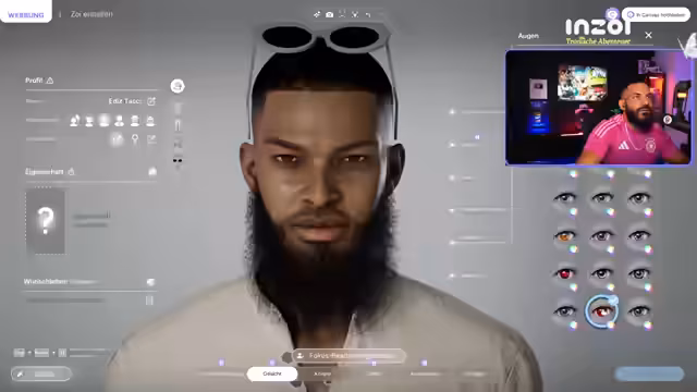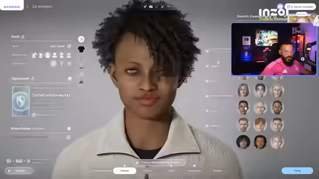 00:07:13Ich beginne mit der Charaktererstellung für das inZOI-Event, das um 15 Uhr startet. Ich benötige Hilfe vom Chat, um den Charakter so identisch wie möglich zu gestalten. Der Charakter soll gut aussehen, einen Bart und einen Seitenaufs Ziffer-Schnitt haben. Ich versuche, mein Aussehen im Spiel nachzubilden, was sich als schwierig erweist. Es gibt viele Anpassungsmöglichkeiten, von Gesichtszügen bis zur Körperform. Ich experimentiere mit verschiedenen Optionen, um einen Charakter zu erstellen, der mir ähnlich sieht. Es ist schwierig, sich selbst zu erstellen. Ich brauche ein geiles Bild von mir. Ich mache kurz ein Selfie. Ich habe eine Schwäche, wenn ich eine Schwäche habe, dann ist es Gesicht auswählen.