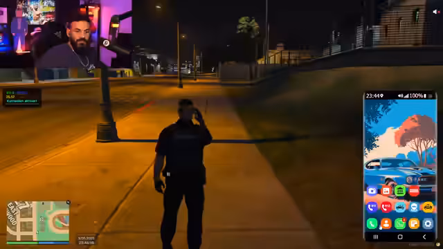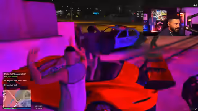 05:55:45Nachdem die Fahrzeugmodifikationen abgeschlossen sind, kommt es zu einem unerwarteten philosophischen Gespräch mit dem NPC-Mechaniker über das Alleinsein im Leben. Der Mechaniker äußert sich traurig und der Streamer versucht, ihn mit Lebensweisheiten aufzumuntern, indem er betont, wie wichtig es ist, alleine stark zu sein. Dieses Gespräch wird jedoch abrupt unterbrochen, als der Streamer feststellt, dass er von Polizeiautos verfolgt wird. Er versucht, den Verfolgern zu entkommen und überlegt, das Auto zu wechseln oder die Kennzeichen zu entfernen, um nicht erkannt zu werden. Die Verfolgungsjagd eskaliert, als weitere Polizeifahrzeuge hinzukommen und der Streamer in eine gefährliche Situation gerät, in der sein Auto zu brennen beginnt und er befürchtet, seinen Job zu verlieren.