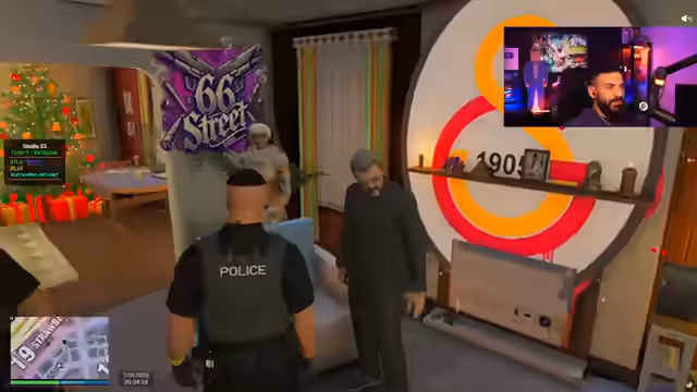 00:34:27Die Streife beginnt, wobei Uluda zunächst das Fahren übernimmt, jedoch Schwierigkeiten hat. Der Streamer, als Officer Ben, testet die Fahrkünste der Rookies und weist sie auf vergessene Schritte wie das Anschnallen und die Funkmeldung hin. Sie fahren zu einer Adresse, um eine Hausdurchsuchung durchzuführen. Beim Betreten des Hauses werden die Bewohner, Herr Salami und seine Frau Fatima, befragt. Officer Ben durchsucht das Haus auf unkonventionelle Weise, indem er die Unterwäscheschublade der Frau nach Drogen durchsuchen lässt, basierend auf 'Polizeischulwissen'. Es werden Blutflecken an Herrn Salamis Händen entdeckt, was den Verdacht auf häusliche Gewalt erhärtet.