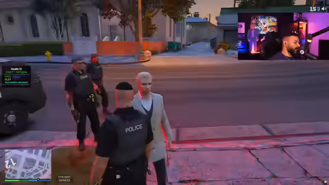 06:08:29Nach der Verfolgungsjagd wird der Streamer von der Polizei gestellt und verhört. Er versucht, die Situation zu erklären, indem er angibt, von einer bewaffneten Person bedroht worden zu sein, die ihn zur Flucht gezwungen hätte. Die Polizisten finden jedoch eine Waffe in seinem Handschuhfach, was die Situation für den Streamer weiter erschwert. Er beteuert seine Unschuld und erklärt, dass die Waffe dem Beifahrer gehörte, der ihn bedroht hatte. Die Polizisten sind skeptisch, da es mehrere Zeugenaussagen gegen den Streamer gibt. Das Gespräch dreht sich um die Glaubwürdigkeit der Aussagen und die Verantwortung für die gefundene Waffe. Der Streamer wird darauf hingewiesen, dass er bereits drei Dienstaufsichtsbeschwerden (DABs) erhalten hat und dies ein weiterer Vorfall ist.