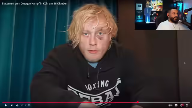 00:50:12Es wird ein Clip von Frederik Vossgröne gezeigt, in dem er sagt, dass er sich nicht freuen konnte und nicht weiß, ob er nochmal bei Octagon kämpfen will. Er sagt, dass er beim Event immer wie ein Stück Scheiße behandelt wird. Es wird bedauert, dass der Clip so leise aufgenommen wurde. Es wird erwähnt, dass er nach der Pressekonferenz einfach aufgestanden und gegangen ist. Es wird spekuliert, dass er sehr angepisst war und versucht, den Grund dafür herauszufinden. Es wird ein weiteres Statement von Vossgröne gezeigt, in dem er sagt, dass er in Köln kämpfen wird, weil sich seine Fans darauf freuen und Tickets gekauft haben. Er wird nicht darüber reden, was vorgefallen ist, weil es zu viele Dinge sind. Es wird positiv hervorgehoben, dass er an seine Fans denkt und sein Versprechen hält. Es wird vermutet, dass es sich um pure Emotionen handeln könnte. Es wird das Thema Geld angesprochen und kritisiert, dass erwartet wird, dass Menschen perfekt sind und kein Geld annehmen sollen. Es wird betont, dass Vossgröne das Recht auf Geld hat, da er sich vorbereitet, Weightcut macht, seinen Körper und sein Leben riskiert und trotzdem kämpft, obwohl er angepisst ist und es Probleme mit Oktagon gab. Es wird kritisiert, dass der Titel des Statements nicht richtig gelesen wurde und es eigentlich nur um den Kampf in Oktagon ging.