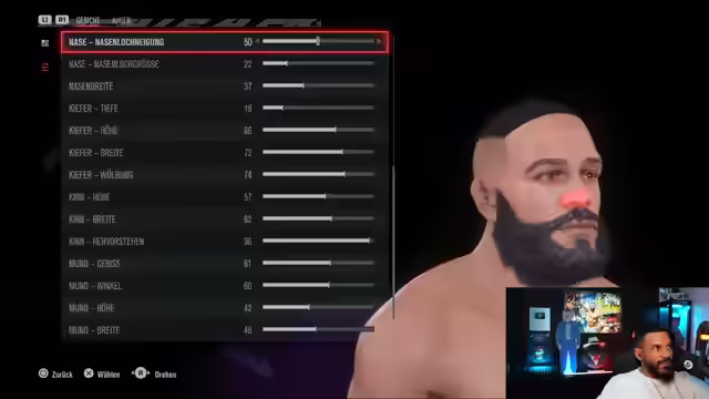 01:41:59Es wird ein Charakter im UFC-Spiel erstellt, wobei besonderer Wert auf das Aussehen gelegt wird, um eine gewisse Ähnlichkeit zu erzielen. Der Hautton wird angepasst und verschiedene Frisuren und Bärte werden ausprobiert. Es wird ein Bild zurate gezogen, um das Gesicht des Charakters genauer zu gestalten, wobei die Form des Gesichts, die Augenbrauen, die Nase und die Lippen angepasst werden. Die Schwierigkeit, sich selbst im Spiel zu gestalten, wird betont. Trotzdem wird versucht, so nah wie möglich an das eigene Aussehen heranzukommen. Nach der Anpassung des Gesichts werden auch der Körperbau und die Kleidung ausgewählt. Der Kampfstil wird an Alex Pereira angelehnt. Es wird eine Walkout-Musik ausgewählt, obwohl diese im Spiel nicht hörbar ist. Anschließend werden die Spieleinstellungen angepasst, wie Schwierigkeitsgrad, Spielstil und Kommentatorsprache. Der erste Kampf steht bevor, und der Streamer äußert seine Nervosität. Nach dem ersten gewonnenen Kampf in der UFC-Karriere werden 15.000 Dollar Preisgeld gewonnen, neue Fans werden dazu gewonnen und die Langlebigkeit des Charakters wird auf 3,2 gesetzt.