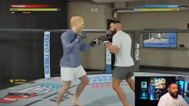 02:08:03Es wird die Idee eines Turniers mit Charakteren von verschiedenen Streamern diskutiert. Nach der Einführung in die UFC wird ein Trainingslager in Las Vegas besucht. Der erste Vertrag wird unterzeichnet und ein Kampfangebot gegen einen größeren Gegner angenommen. Es folgen Sparring-Einheiten, um die Fähigkeiten zu verbessern, wobei der Fokus auf Kickkombinationen und Ellbogenstößen liegt. Die Fitness des Charakters ist jedoch niedrig, was zusätzliches Training erfordert. Der Gegner wird analysiert, und es wird festgestellt, dass er aus dem Kickboxen kommt. Es werden Social-Media-Aktivitäten durchgeführt, um den Kampf zu bewerben. Im Training kommt es zu einer Verletzung, die behandelt werden muss. Es wird entschieden, sich zu erholen und den Kampf zu hypen. Ein Trainingspartner wird eingeladen, um Techniken zu erlernen, wobei der Fokus auf Clinch-Arbeit und Kniestößen liegt. Die Ausdauer des Charakters wird verbessert, und es wird erneut gesparrt. Es kommt zu einer weiteren Verletzung, die behandelt werden muss. Die Kampfentwicklung wird aufgerufen, um die verletzten Attribute zu verbessern.