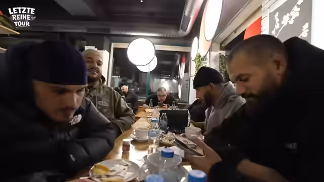 03:54:46Nach dem Bowling-Spiel geht die Reise weiter. Die Gruppe wechselt den Ort und ist nun in einem türkischen Restaurant. Es finden Diskussionen über die anstehende Reise nach Istanbul und über kulinarische Vorlieben statt, insbesondere über Avocado-Brot und Trüffel. Der Streamer unterhält die Zuschauer mit Anekdoten und bereitet die Gruppe auf den nächsten Teil der Reise vor, während er gleichzeitig auf zukünftige Streams ankündigt.