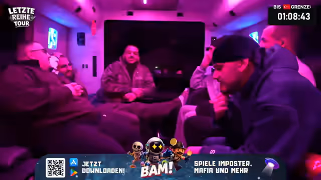 06:54:32Die Streamergruppe nähert sich der türkischen Grenze. Es kommt zu technischen und organisatorischen Problemen, da der Bus verpasst wurde und sie ein anderes Fahrzeug nehmen müssen. Eine Person aus der Gruppe soll in die Toilette geschissen haben, was zu einer Belüftungsproblemen und Geruchsbelästigung führt. Am Grenzübergang angekommen, werden sie offiziell ins Land abgeschoben und feiern diesen Schritt. Sie planen, eine größere Tour durch die Türkei und bis nach Aserbaidschan zu machen.