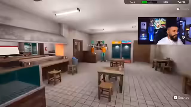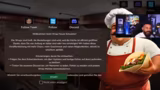 00:12:44Im Spiel wird das Restaurant mit einem kleinen Budget und entspannten Kunden eröffnet. Nachdem die ersten Vorräte wie Hühnerfleisch, Salat und Lavasch bestellt sind, beginnt der Service. Der Streamer ringt anfangs mit der Bedienung, dem Schneiden des Döners, der Salatzubereitung und dem richtigen Zusammenbau der Bestellungen. Er lernt nach und nach, die Tabletts zur Bedienung zu nutzen und die Bestellungen frisch zuzubereiten, während er dabei auch für unerwartete Kundenwünsche, wie nur Fleisch, flexibel bleiben muss.