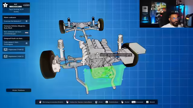 04:14:33Die komplexen Reparaturen am Schrottauto gestalten sich schwieriger als geplant. Der Streamer muss eine Vielzahl von Ersatzteilen kaufen, was die Kosten in die Höhe treibt. Ein Problem ist, dass für den Einbau ein Werkstatt-Upgrade notwendig ist, welches jedoch hohe Anforderungen an den Ruf und Büro-Level des Spielers stellt. Dieses Ziel kann mit dem aktuellen Budget und Status nicht erreicht werden, was die Frustration über die Spielmechanik verstärkt.