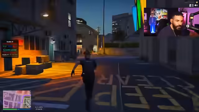 01:42:48Während einer laufenden Banküberwachung mit ATM-Raub gerät die Situation in einen kritischen Fehler. Die verdächtigen Mule-Fahrer können entkommen, weil der Streamer bei der Verfolgungsjagd die Kontrolle über sein Polizeiauto verliert. Dies führt zu unprofessionellen Ausfällen und dem unglücklichen Entschluss, ein Taxi zu rufen, um zur Polizei zurückzukehren. Ein Streit mit dem taxifahrenden "Borat" über dessen Aufenthaltsstatus und ein anschließender Wutausfall des Streamers zeugen von hohem Frust.