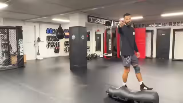 00:21:29Das Training verlagert sich auf den Bodenkampf (Grappling). Es wird erklärt, warum Grappling für den Kampf entscheidend ist und wie sich der Streamer in diesem Bereich wohlfühlt. Er führt eine Übung vor, bei der ein Kameramann seine Bewegungen imitiert, um dem Streamer die Positionierung und Kontrolle am Boden zu demonstrieren. Später wird mit einem Medizinball eine Simulation durchgeführt, um die Kraft und Kontrolle unter Druck zu trainieren, was eine anspruchsvolle Übung ist.