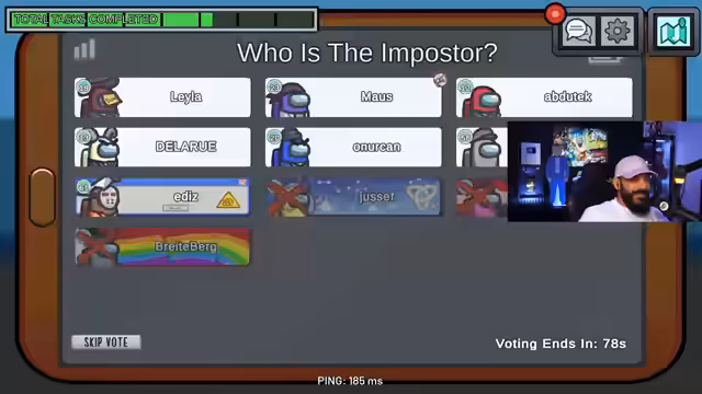 00:00:00Das Spiel beginnt mit Unstimmigkeiten und gegenseitigen Beschuldigungen. Spieler beschweren sich über das Verhalten anderer, so über einen, der angeblich Maus nicht gerettet hat und stattdessen Breitenberg als Imposter verdächtigt. Es kommt zu Vorwürfen, man hätte jemanden nicht töten sollen, und die Spieler diskutieren über verdächtiges Verhalten. Zudem wird über das Fehlen eines Alibis gesprochen, nachdem eine Leiche in Elektrik gefunden wurde. Die Runde verläuft chaotisch, da sich Spieler gegenseitig verdächtigen und sich nicht über die Vorgehensweise einigen können.