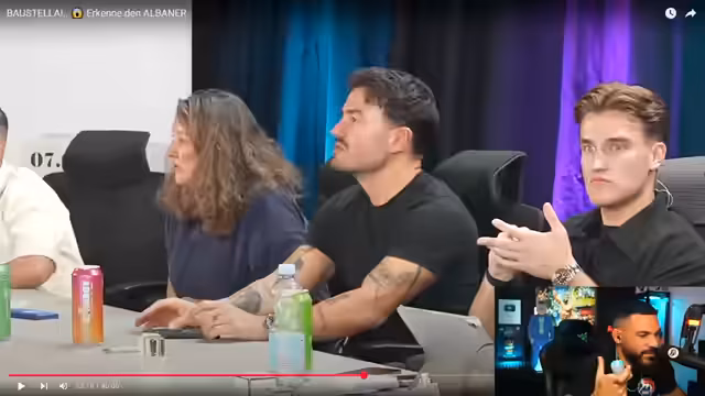00:17:45Der Stream wechselt das Format und startet das Spiel 'Erkenne den Albaner'. Fünf Teilnehmer aus dem Chat präsentieren sich vor der Kamera. Der Streamer und die Community beobachten die Teilnehmer, analysieren ihre Namen, Herkunft, Aussprache und kulturelle Kenntnisse. Das Spiel erweist sich als sehr anspruchsvoll, da sich einige Teilnehmer exzellent vorbereitet haben und Fragen zu Städten, Traditionen und Eigenheiten des Kosovo perfekt beantworten.