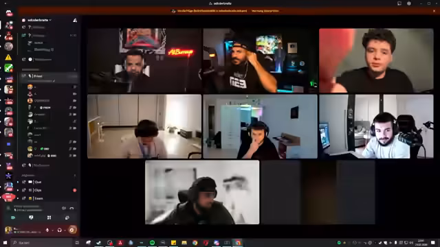 02:00:28Das Spiel 'Schnitzeljagd' beginnt mit der Erklärung der Regeln. Acht Teilnehmer sind mit aktivierter Kamera im Discord-Channel anwesend. Der Streamer oder Co-Moderator nennt einen Gegenstand, und die Teilnehmer müssen diesen so schnell wie möglich in die Kamera zeigen. Wer als Letzter zeigt, fliegt aus dem Spiel. Sollten mehrere Teilnehmer einen Gegenstand nicht haben, gibt es ein Stechen. Das Spiel wird durchgeführt, bis ein klarer Gewinner feststeht, der ein Gesichts-Paket gewinnen soll. Es kommt zu technischen Schwierigkeiten und Problemen mit der Kamera-Software, die das Spiel kurz unterbrechen.