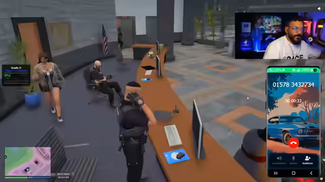 06:36:44Ein Bewerber namens Tony Lusso meldet sich für eine Stelle und reicht seine Unterlagen ein. Der Streamer, der die Rolle des Personalverantwortlichen übernimmt, überprüft die Daten und stellt fest, dass der Bewerber im Recall ist. Kurz darauf erhält er einen Anruf von Kollegen, die gestern eine Bewerbung hatten und nach dem Stand der Dinge fragen. Eine weitere Meldung über eine bewaffnete Bedrohung und einen Autodiebstahl durch einen Taxifahrer erreicht die Leitstelle, woraufhin eine Taskforce eingesetzt wird. Wenig später wird ein Überfall mit Geiselnahme in einem Labor gemeldet, was die Leitstelle erneut in Alarmbereitschaft versetzt. Der Streamer muss die Informationen sammeln und an die entsprechenden Streifen weiterleiten, wobei er die genauen Details des Vorfalls klären muss, um die Einsatzkräfte effektiv zu koordinieren. Die schnelle Abfolge von Routineaufgaben und Notfällen zeigt die Vielseitigkeit und den Stress des Leitstellendienstes.