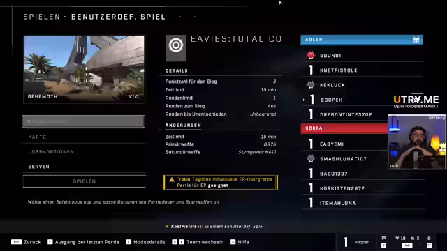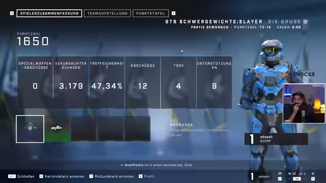 03:49:00Es wird eine aggressive Taktik für die anstehende Spielrunde besprochen: Als geschlossenes Team rechts herum rotieren und alles zerstören, was sich bewegt. Es wird ein Banshee auf B3 gesichtet. Das Team erzielt schnell einen Punktestand von 1-0. Nach dem Spiel wird diskutiert, ob die Runde gewertet werden soll, da ein Team möglicherweise das Spiel verlassen hat. Es wird beschlossen, dass die Runde nicht zählt und das verlierende Team die nächste Map und den Modus auswählen darf. Der Wunsch nach einer Map ohne Fahrzeuge wird geäußert. Es wird betont, dass die vorherige Runde nur dazu diente, zu zeigen, wie anspruchsvoll Halo sein kann. Team Deathmatch ohne Autos wird als nächster Modus gewählt. Es wird festgelegt, dass mindestens 70 Kills erreicht werden sollen. Die Teams werden überprüft und die nächste Runde beginnt.