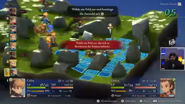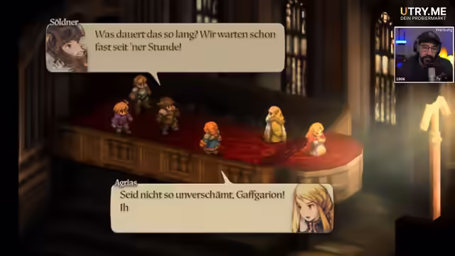 00:14:18Es beginnt eine Dialogszene mit der Prinzessin Ovelia und Gavgarion, gefolgt von einer Diskussion über Söldner und Ritter. Der erste Kampf startet als Tutorial, in dem die Grundlagen des rundenbasierten Kampfsystems erklärt werden. Es wird die Steuerung von Ramsa erläutert, inklusive Bewegung, Angriffe und Spezialfähigkeiten wie "Rahmen" und "Steinwurf". Die japanische Vertonung wird gelobt. Nach anfänglichen Schwierigkeiten und fast dem Tod von Ramsa, wird der Kampf gewonnen. Es folgt eine weitere Dialogszene, in der eine Verschwörung angedeutet wird und die Suche nach der Wahrheit beginnt. Das erste Kapitel "Die Ohnmächtigen" wird angekündigt und die Vertonungsoptionen (Englisch/Japanisch) erwähnt. Es wird festgestellt, dass der Stream in der falschen Kategorie läuft und dies korrigiert.