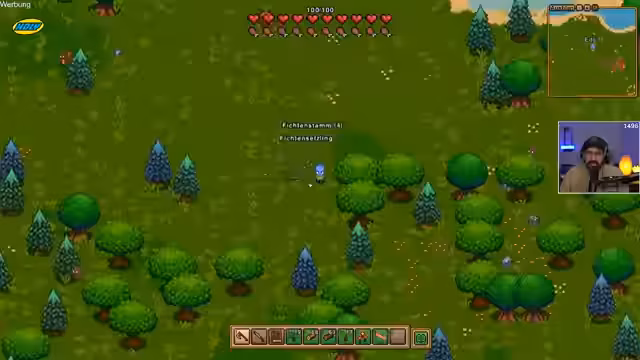 01:24:46Der Stream beginnt mit dem Sammeln von Ressourcen, insbesondere Holz und Spinnendrüsen. Der Streamer beschwört eine Spinne, die ihm im Kampf hilft, und sammelt zusätzlich Kristalle und Gold. Er berichtet von Problemen mit dem Kaffee, der ständig kalt wird, und überlegt, eine Thermoskanne oder einen Trinkhelm zu nutzen. Das Ziel ist es, die Spinnen zu jagen, um eine bessere Ausrüstung herzustellen.