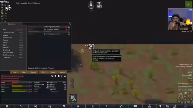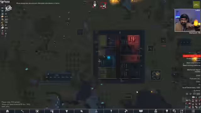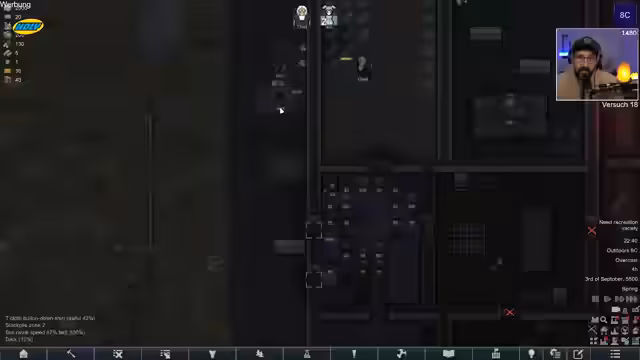 05:08:35Die angespannte Situation verschärft sich zusehends. Mit nur noch 25 Tagen bis zum Eintreffen der Void stehen die Kolonisten unter enormem Zeitdruck. Nahrungsmittelknappheit führt dazu, dass rohes Fleisch verzehrt werden muss, was die kollektive Stimmung drastisch senkt. Gleichzeitig müssen die Außenwände der Basis errichtet werden, um die Kolonie zu schützen, während gleichzeitig wertvolle Ressourcen wie Granit abgebaut und Bauplatten gesammelt werden müssen. Der Druck, das Raumschiff rechtzeitig zu fertigzustellen, wird zur zentralen Sorge und droht, den Run frühzeitig scheitern zu lassen.