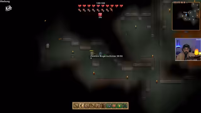 00:24:38Nachdem eine erste, kleine Basis geschaffen sei, gehe der Streamer in den Untergrund, um Ressourcen wie Eisen und Gold zu farmen. Er werde dabei auf verschiedene Biome treffen, darunter auch gefahrvolle Eisgebiete, die er zunächst meiden solle. Der Fokus auf Nahkampfwaffen wie den Bumerang sei ihm bewusst, aber er suche nach Loot, um seine Ausrüstung zu verbessern. Der Kampf gegen starke Gegner und die Organisation der Beute würden seine Zeit in den unterirdischen Ebenen in Anspruch nehmen.