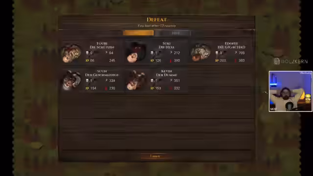 04:39:21Nach dem Verlust von Turi und in einer ausweglosen Situation mit leerer Fatigue und umzingelt von Feinden, erleidet die Truppe eine vernichtende Niederlage. Der Streamer analysiert im Anschluss den Kampf und kommt zu dem Schluss, dass seine eigene Rüstung zu schwach war und sich bei der Waffenauswahl, insbesondere dem Zweihandschwert im Endgame, verkalkuliert hat. Die Raider waren aufgrund ihrer starken Rüstung und Kampfkraft übermächtig geworden.