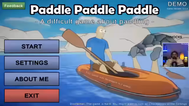 05:11:00Der Streamer und Matteo sind erfolgreich in die Paddle Paddle-Lobby eingetreten, während Lena zu spät kommt. Das Spiel startet als ein Wettrennen, bei dem die Spieler versuchen, als Erste ins Ziel zu kommen. Die Steuerung ist einfach und besteht nur aus Vor- und Zurück-Bewegungen des Paddels. Der Streamer erwähnt, dass er invertiert spielt, und das Spiel beginnt mit dem Countdown 3, 2, 1.