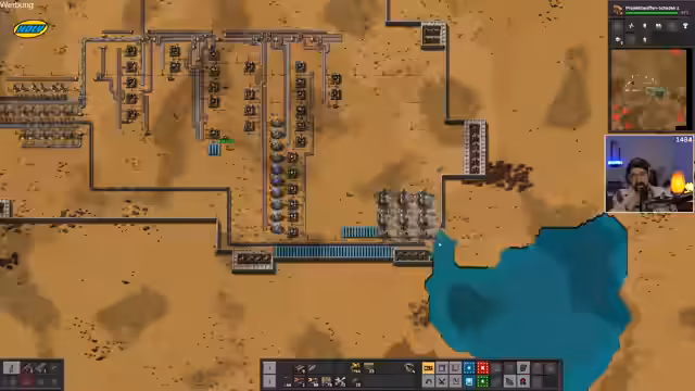 06:28:41Die Spieler legen den Fokus auf die Erschließung der riesigen Ölquelle im Süden, um eine massive Produktion von Flammenwerfer-Türmen zu ermöglichen. Der nächste Schritt ist die Beseitigung eines Nests im Süden, um diesen Bereich abzusichern und Mauern sowie Flammenwerfer zu errichten. Dies würde eine große, sichere Zone für den Aufbau einer neuen, größeren Eisenproduktion schaffen, die dringend benötigt wird, da die aktuellen Eisenreserven zur Neige gehen. Die Automatisierung von Rohren wird als notwendig erachtet, um die Infrastruktur für die Expansion zu gewährleisten. Die Spieler diskutieren auch die Notwendigkeit, Akkumulatoren zu erforschen, um die Stromversorgung zu stabilisieren, da die aktuelle Stromproduktion nicht ausreicht, um die wachsende Basis zu versorgen.