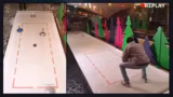 02:06:54Das Spiel hat die letzte Kehre erreicht und der Stand ist 11:0 für Team Edo und Radler. Trotz der aussichtslosen Lage versuchen Leon und Kaddi, das Ergebnis noch zu verbessern, da das Torverhältnis für die Finalplatzierung entscheidend sein könnte. Es wird eine Taktik diskutiert, um gegnerische Steine aus dem Weg zu räumen. Edo P. nutzt eine mathematische Formel für seinen Wurf, der ihn näher an den gegnerischen Stein bringt.