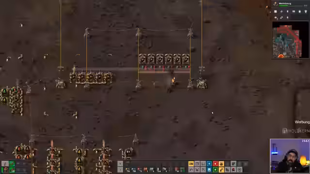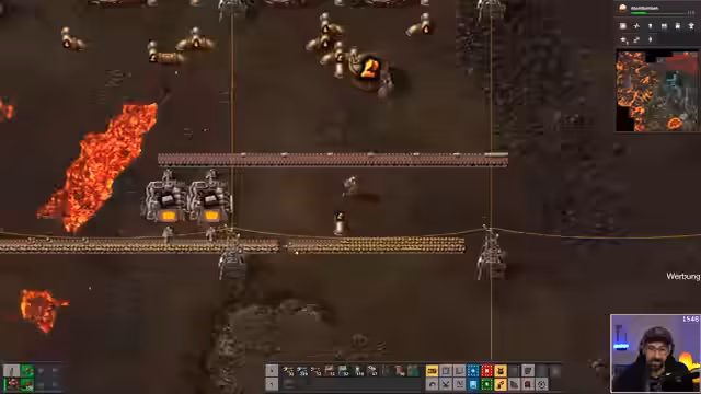 00:20:36Um an das für den Fortschritt benötigte Wolfram zu gelangen, muss der Streamer einen riesigen Wurm bekämpfen. Er baut eine Verteidigungsstellung aus Geschütztürmen und Munition, wobei der strategische Aufbau entscheidend ist. Nach einem intensiven Kampf, bei dem er selbst Schaden nimmt, besiegt er das Wesen und sichert sich so Zugang zu den Wolfram-Vorkommen. Anschließend beginnt er mit dem Abbau dieser hochwertigen Ressource mit neuen, effizienteren Erzförderern.