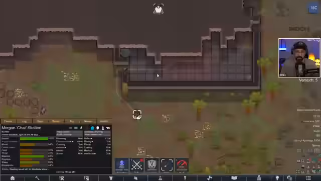 Ein neuer RimWorld-Versuch im Void-Szenario beginnt. Nachfolgend wird Scum mit Leon und Suki gespielt, wobei der Fokus auf dem Erwerb guter Schusswaffen, eines Fahrzeugs und dem Aufbau einer Basis liegt. Unter Umständen folgt danach noch Path of Exile.