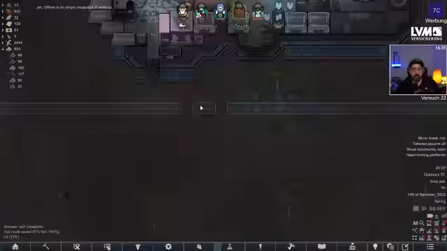 02:28:12In RimWorld befindet sich die Kolonie in einem kritischen Zustand nach einem Mecha-Raid. Edopeh analysiert die aktuelle Lage, die Ausrüstung der Kolonisten und die anstehenden Bedrohungen. Die Entscheidung, ob die Kolonie den Wert riskiert, indem sie einen Void untersucht, wird gründlich abgewogen. Der Fokus liegt darauf, ein funktionierendes Raumschiff zu bauen und einen sicheren Ort für den Flug zu finden.