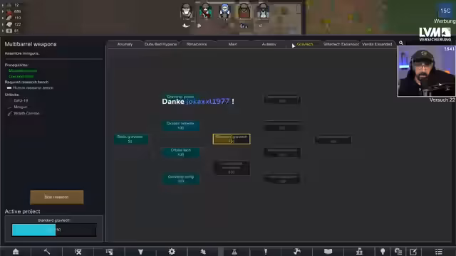 04:18:16Nachdem die kritische Kraftstoffkrise überwunden ist, konzentriert sich der Streamer auf den Ausbau des Raumschiffs. Die Forschung von 'Standard Graf Tech' wird abgeschlossen, was neue Bauteile wie Compact Workspaces und eine GrafTech-Konsole ermöglicht. Diese Konsole überwacht den Status der Schiffskomponenten und reduziert die Wartungskosten. Gleichzeitig werden die Pläne für zukünftige, größere Antriebe und die Notwendigkeit eines stärkeren Schiffes gegen die wachsende Bedrohung durch die Void angesprochen. Die Gefahr durch Drop Raids bleibt dabei ständige Begleitung.
