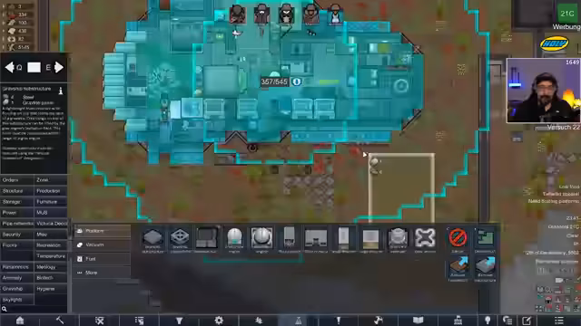 01:55:11Der Stream von Necesse endet mit der Erkenntnis, dass der Boss für heute nicht besiegt wird. Edopeh wechselt das Spiel und beginnt den Teil von RimWorld. Er bittet die Community um Tipps für einen Fernseherkauf im Rahmen des Black Friday und geht auf eine Kooperation mit dem Schmuckhersteller Holzkern ein. Anschließend startet er seinen RimWorld-Save, in dem die Kolonie nach einem Raid von Mechs in Gefahr schwebt.