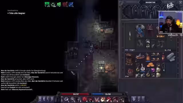 02:56:53Im Stream wird intensiv der Schwarzmarkt genutzt, um Ausrüstung zu erwerben. Der Streamer kauft eine T4-Rüstung für 5000 Gold und komplettiert seine Metz-Ausrüstung. Gleichzeitig wird das Inventarmanagement thematisiert, durch den Erwerb einer neuen Gürteltasche für Ringe und Juwelen sowie einer Schatulle für Heiltränke, um Platz zu schaffen. Dies unterstreicht den strategischen Fokus auf das Sammeln von Ressourcen und die Verbesserung der Ausrüstung. Das Inventar wird als Herausforderung und wichtiger Teil des Spiels angesehen, der strategische Entscheidungen erfordert.