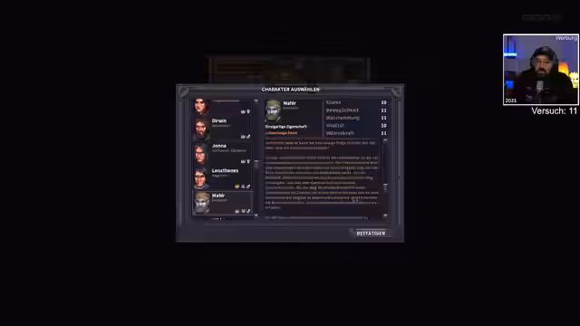 01:47:59Nach dem Tod des vorherigen Charakters beginnt ein neuer Lauf. Die Wahl der Klasse ist der Schlüssel: Der Derwisch wird als interessante Option für eine reisende Lebensweise und den Fähigkeitsbaum mit passiven Boni besprochen. Jorgrim, der Trophäensammler, wird als weitere starke Wahl genannt. Letztendlich wird Anna für ihren Tank-Build mit Schild und Schwert ausgewählt, um eine defensive und stabilisierte Spielausrichtung zu verfolgen.