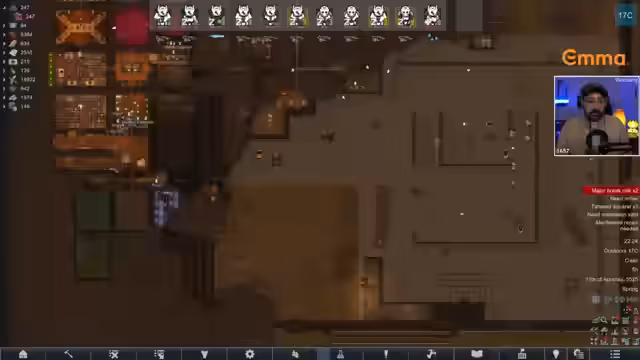 03:28:39Der Streamer äußert Enttäuschung über den Verlust von Ressourcen und Kolonisten. Er bemerkt den Mangel an Neutroamin und stellt fest, dass wichtige Kolonisten wie Toro bewusstlos sind und ihre Rüstung verloren haben. Auch die Basis ist beschädigt, da ein Roboter unerlaubt Gebäude errichtet hat, was zu Verwirrung über die Baubefugnisse führt. Die Moral der Kolonisten leidet unter den Verlusten, und der Fokus liegt darauf, die grundlegenden Strukturen und die Moral wiederherzustellen.