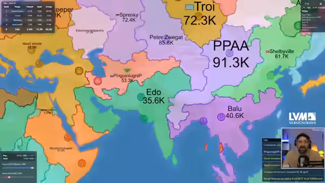 01:20:14Das Gameplay ist ein fortwährender Kreislauf aus diplomatischen Bündnissen und Verrat. Der Streamer schließt gezielt Allianzen, wird aber auch selbst angegriffen. Als Reaktion auf einen Angriff schließt er sofort Freundschaft, um im selben Moment den Gegner zu 'fressen' und dessen Territorium zu übernehmen. Diese Taktik, die als strategisches Genie bezeichnet wird, zeigt die Brutalität des Spiels, in dem keine dauerhaften Freundschaften existieren und Expansion über alles geht, selbst auf Kosten ehemaliger Verbündeter.