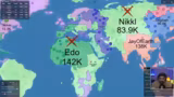 00:23:09Nach seiner ersten Niederlage erklärt edopee die Spielmechaniken detaillierter. Spieler können prozentual ihrer Einheiten entsenden, Arbeiter für Geld einsetzen und Allianzen schließen. Betont wird die Wichtigkeit, mit übermächtigen Gegnen Frieden zu schließen und sie nicht ohne Deckung anzugreifen. In den folgenden Runden wiederholt sich ein Muster: edopeh expandiert schnell, wird aber von mehreren Spielern gleichzeitig attackiert und eliminiert, was er auf seine fehlende Verteidigungsstrategie und Gier zurückführt.