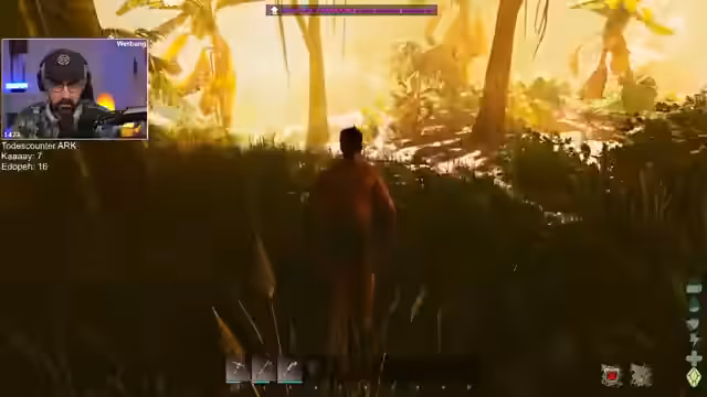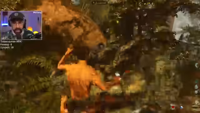 03:23:01Der Streamer gerät in mehrere gefährliche PvE-Situationen. Er kämpft gegen eine Überzahl von Dilos und Raptoren, wobei er es aufgrund von Greed und falscher Taktik, wie dem Nichtnutzen von Bolas, knapp überlebt. Dabei erleidet er erheblichen Schaden und stirbt mehrfach, was auch seinen Partner Kevin aufgrund des Soulink-Systems beeinflusst. Die häufigen Todesfälle werden oft auf strategische Fehlentscheidungen zurückgeführt.