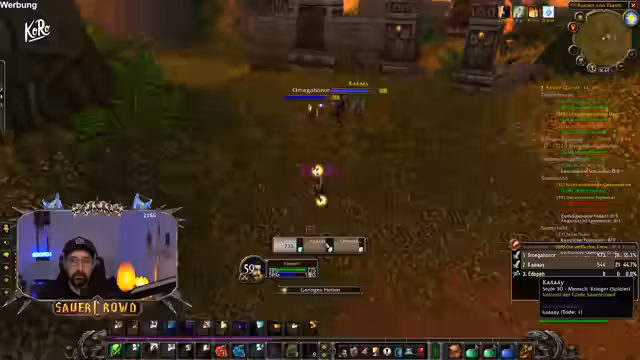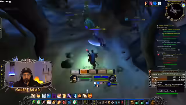 05:29:19Der Streamer arbeitet hart an einer Quest, die er als Lebensaufgabe bezeichnet, und ist bei etwa einem Drittel des Ziels. Gemeinsam mit seinem Mitspieler Edo farmt er Mobs, um Quest-Items zu sammeln. Es kommt zu Diskussionen über den Spawn von Monstern und die strategische Vorgehensweise, um möglichst viele Gegner auf einmal zu pullen, ohne das Lager zu leeren. Bei einem besonders schwierigen Kampf zeigt der Streamer Bedenken wegen seiner geringen Mana-Ressourcen, während Edo ihn beruhigt, indem er dessen verbleibendes Leben lobt.