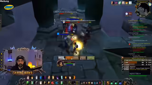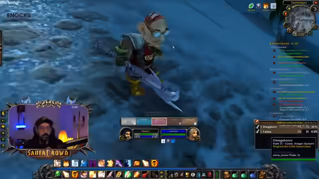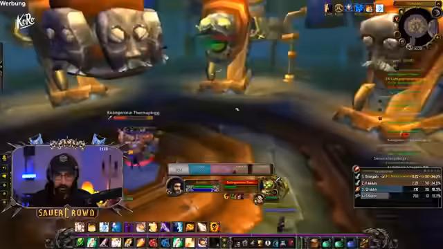 09:48:58Während des Streams wird eine technische Störung mit einem Add-on namens DBM festgestellt, was aber als unkritisch eingestuft wird. Die Gruppe konzentriert sich wieder auf den Dungeon-Durchlauf und diskutiert humorvoll über ihren 'Cheating'-Status aufgrund ihrer überlegenen Ausrüstung. Die Zusammenarbeit zwischen den Klassen, insbesondere bei der Heilung und der Schadensverteilung, läuft reibungslos.