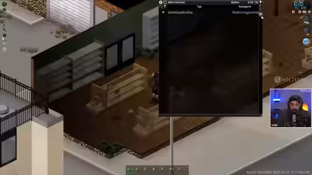 Nach einer Pause wegen einer Grippe wird das Überleben in der Zomboid-Kapelle fortgesetzt. Der Charakter, der sich in der 'First Baptist Chapel' eine neue Etage und einen Ausbau geschaffen hat, muss sich dringend um Nachschub für die anstehende Winterzeit kümmern. Die Wasserversorgung musste nach einem Spiel-Update zunächst repariert werden, bevor eine große Erkundungstour zur Lebensmittelbeschaffung ansteht.