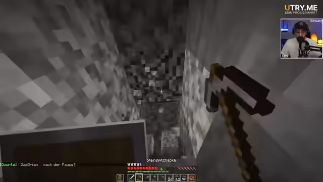 02:01:47Einer der Spieler hat die Werkbank vergessen, aber der andere hat noch eine. Sie sind sich uneins, ob sie nach Diamanten suchen oder nur Eisen sammeln sollen. Die aktuelle Höhe beträgt 18 und das Ziel ist minus 52. Es wird vorgeschlagen, dass ein Spieler einen Weg nach oben buddelt, um im Notfall fliehen zu können, aber das ist riskant, da man dabei entdeckt werden kann. Die Spieler diskutieren die Vor- und Nachteile verschiedener Strategien und entscheiden sich, eine Höhle zu erkunden, um einen Fluchtweg vor der Border zu haben. Sie betreten eine Höhle und finden Eisen. Ein Bogenschütze greift an und verursacht viel Schaden. Ein Spieler fällt in ein Loch. Sie beschließen, keinen Dungeon zu machen und die Hülle weiterzubauen. Fast die komplette Eisenrüstung ist fertig. Die Spieler überlegen, ob sie nach oben gehen oder einen Spinnenspawner für einen Bogen suchen sollen. Sie einigen sich darauf, noch etwas Eisen zu sammeln und dann nach oben zu gehen. Einer der Spieler beginnt, einen Weg nach oben zu bauen.