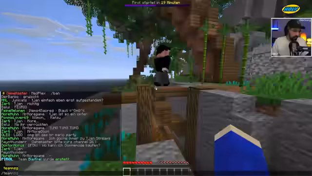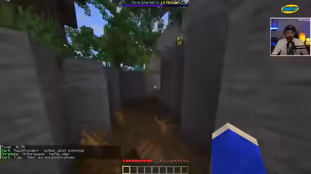 03:16:04Zu Beginn des Stream-Teils konzentrieren sich die Spieler intensiv auf das Farmen von Diamanten. Nach anfänglichem Pech werden mehrere Diamante gefunden, woraufhin die Entscheidung für den Bau von zwei Diamantschwertern und Eisenrüstung fällt. Diskussionen über alternative Items wie Axt oder Verzauberungstabellen werden geführt, aufgrund des hohen Aufwands aber verworfen. Parallel dazu wird das Fieber des Streamers thematisiert, der eine Temperatur von 38 Grad misst und sich über seinen gesundheitlichen Zustand äußert.
